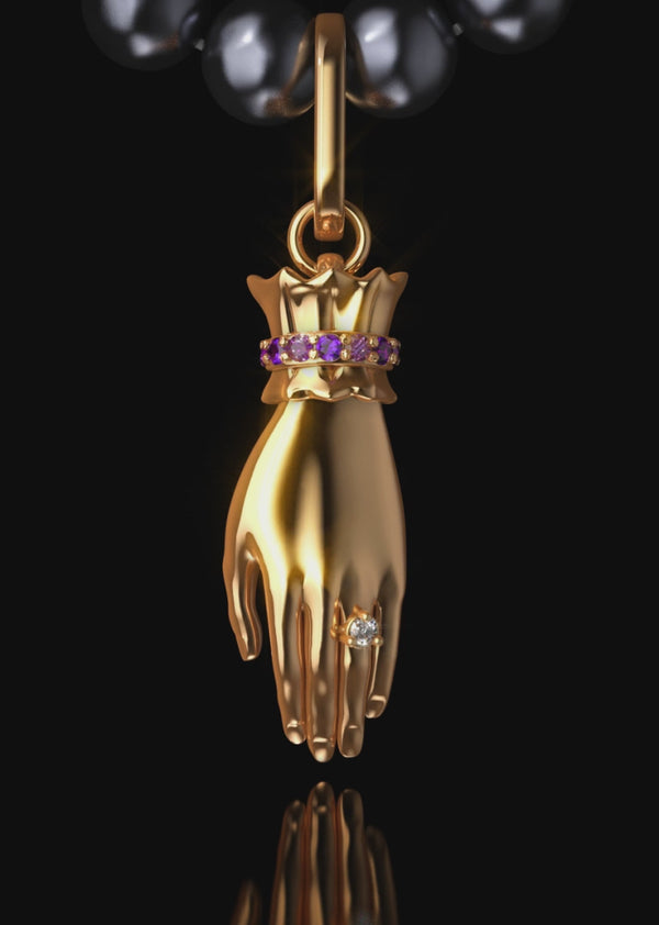 IN YELLOW GOLD WITH DIAMONDS, AMETHYST AND A CONNECTOR LINK